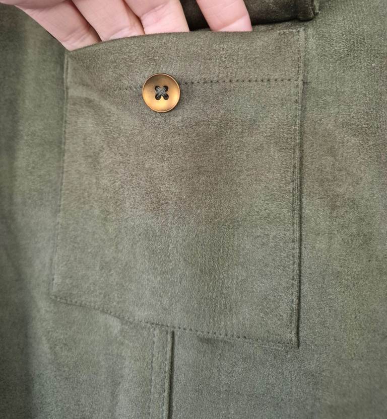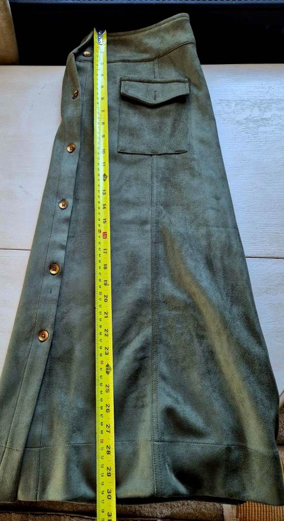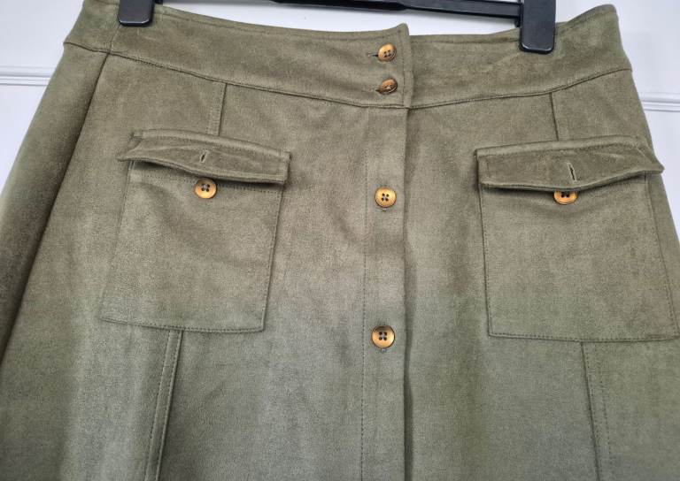 Absolutely stunning Suede look button through skirt with 2 front button down pockets.