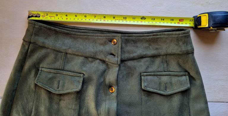 2 imitation back pockets. Spare button attached. Measurements in photos.