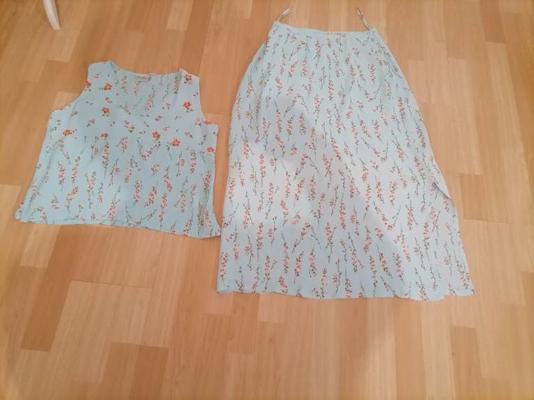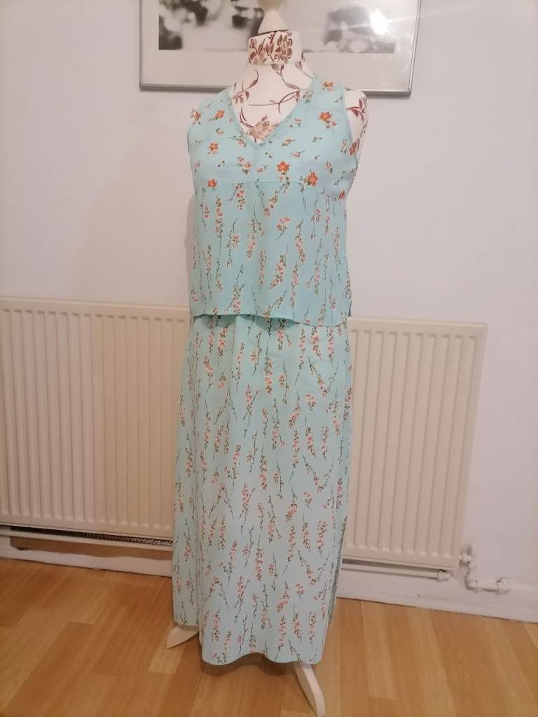 Lovely Pretty SEA WALL Maxi Skirt & Top Summer Outfit from Independent Des8Clothing Brand. Light blue with delicate floral print. Sold in perfect excellent condition as good as new. Pre loved