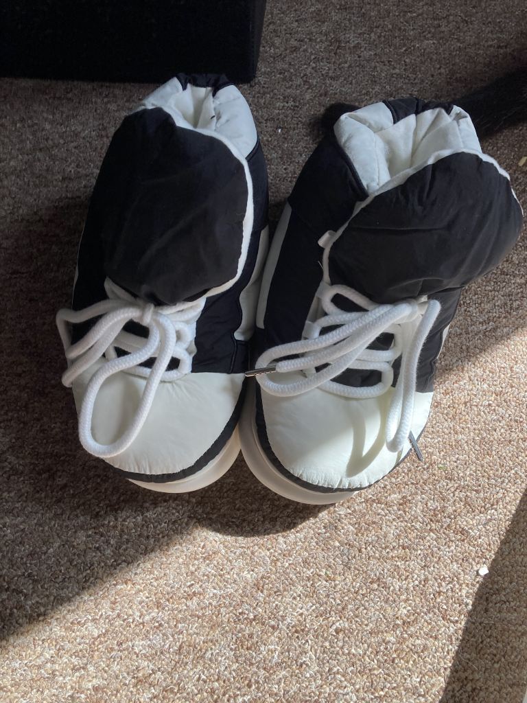Brand new fancy dress boots/shoes slippers size one size think they go up to a 6 very comfy I only put them on to take a picture not worn other wise ideal for mascots too good for a laugh men or woman still in packaging I paid £10 of Temu