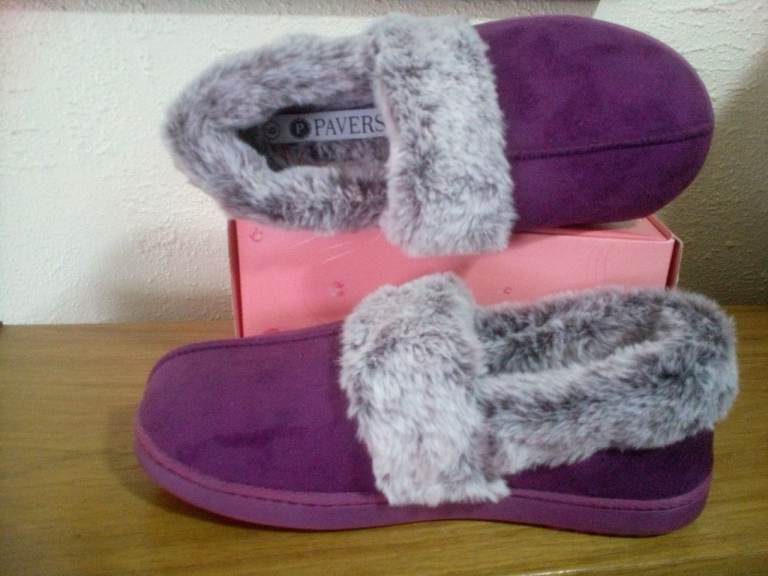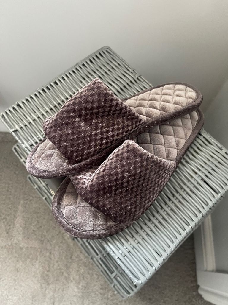 • Pair of mauve quilted slide slippers (soft cushioned sole, gently used)