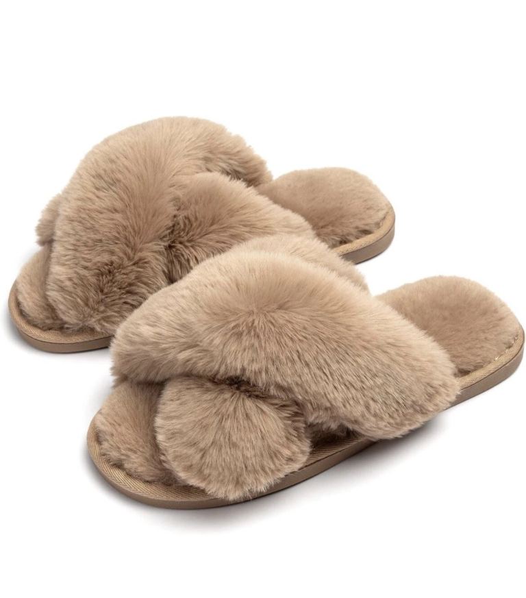 JaneTroides Women Fuzzy Slippers Cross Band Soft Plush Cozy House Shoes Furry Open Toe Indoor or Outdoor Slip on Warm Breathable Anti-skid Sole