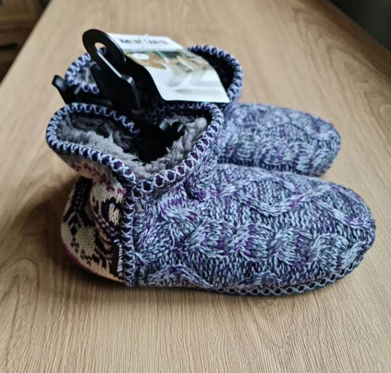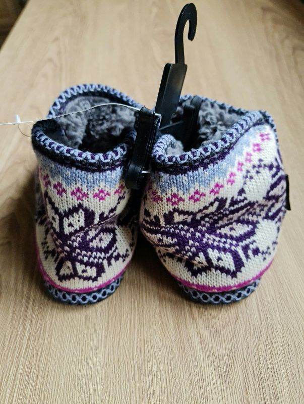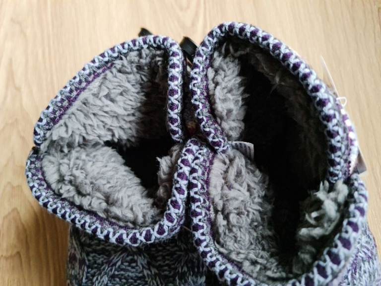 Plush lining and memory foam cushioning inside, knit design, rubber sole outside