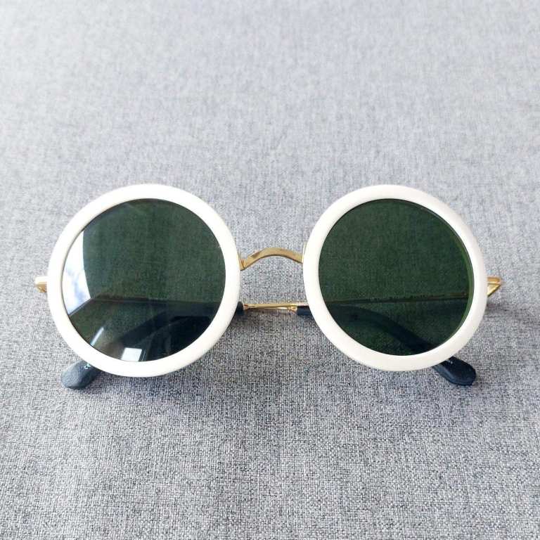 Designer Sunglasses THE ROW Off-White and Gold Round Frame Sunglasses with dark grey lenses and arm tips handcrafted in black lambskin leather. As worn by Beyoncé , Chiara Ferragni 👑, Fearne Cotton 👑 & PSY😎 Product Code: ROW/8/5 Condition: Brand new Comes with a handmade drawstring pouch for storage. £50 ONO