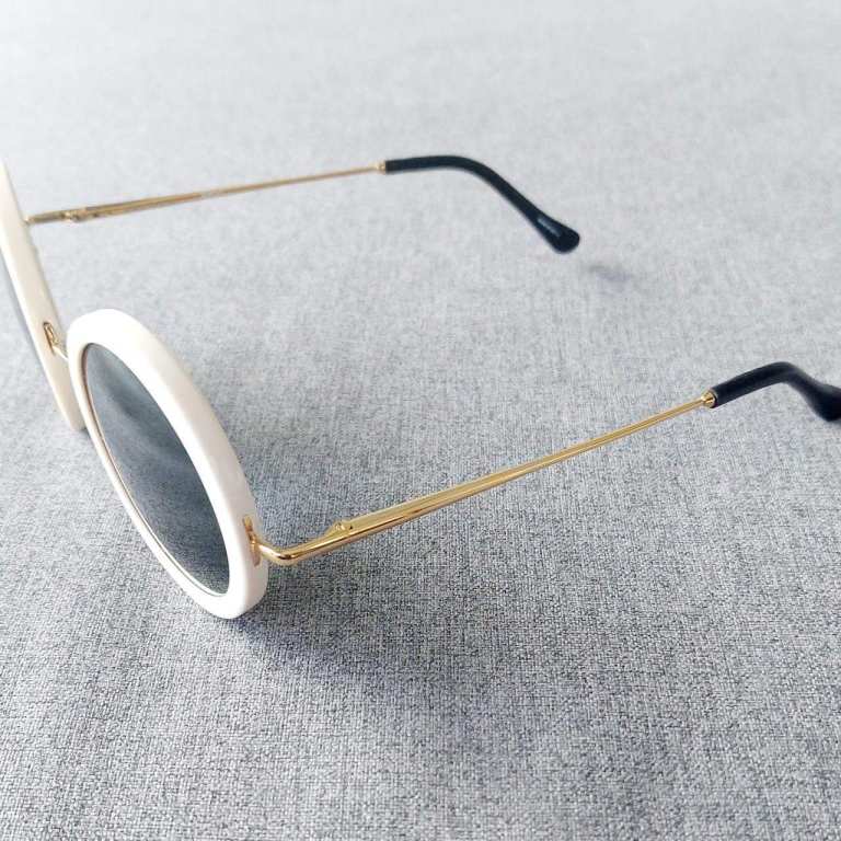 Designer Sunglasses THE ROW Off-White and Gold Round Frame Sunglasses with dark grey lenses