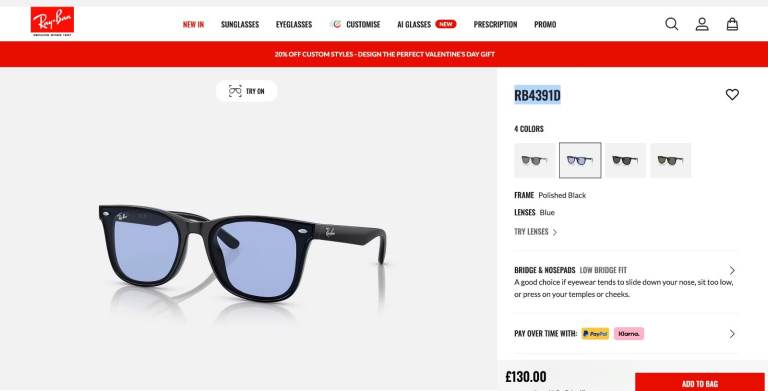Currently £130 on ray-ban. com and elsewhere as seen in images