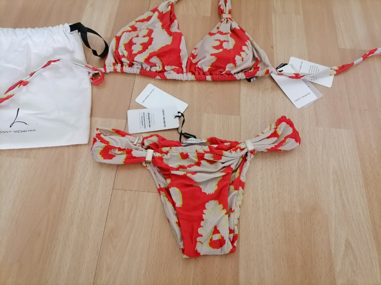 Beautiful Brand New With Tags LENNY NIEMEYER Brazilian Designer Boutique Luxury Swimwear : Halterneck Bikini with a gold finished accessory, ensuring protection against oxidation & greater durability. Sold in immaculate perfect condition. Brand new with tags.