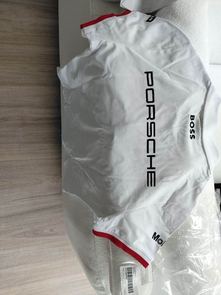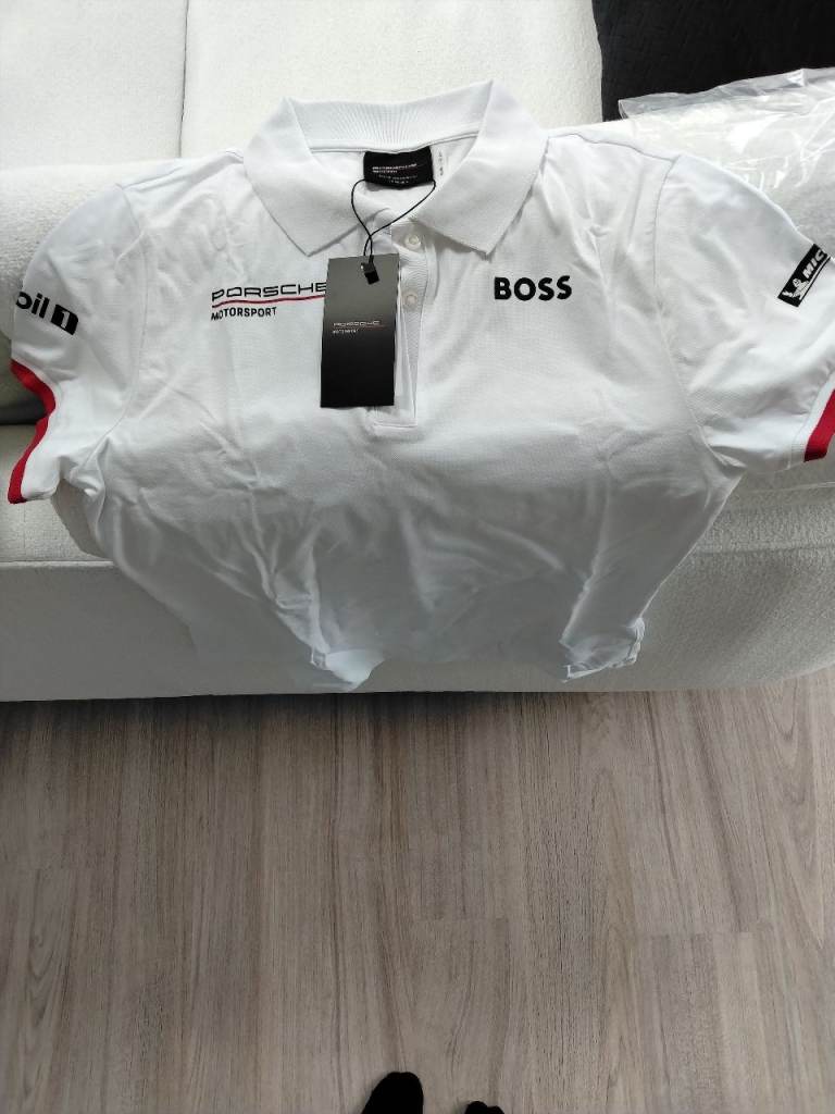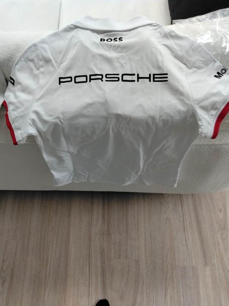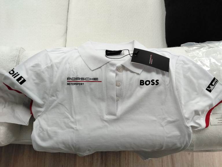 Original Porsche Motorsport white polo shirt, size M, never worn