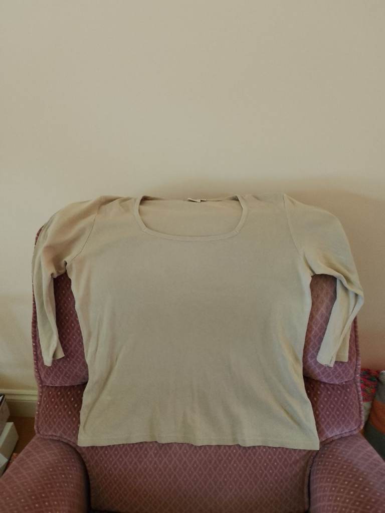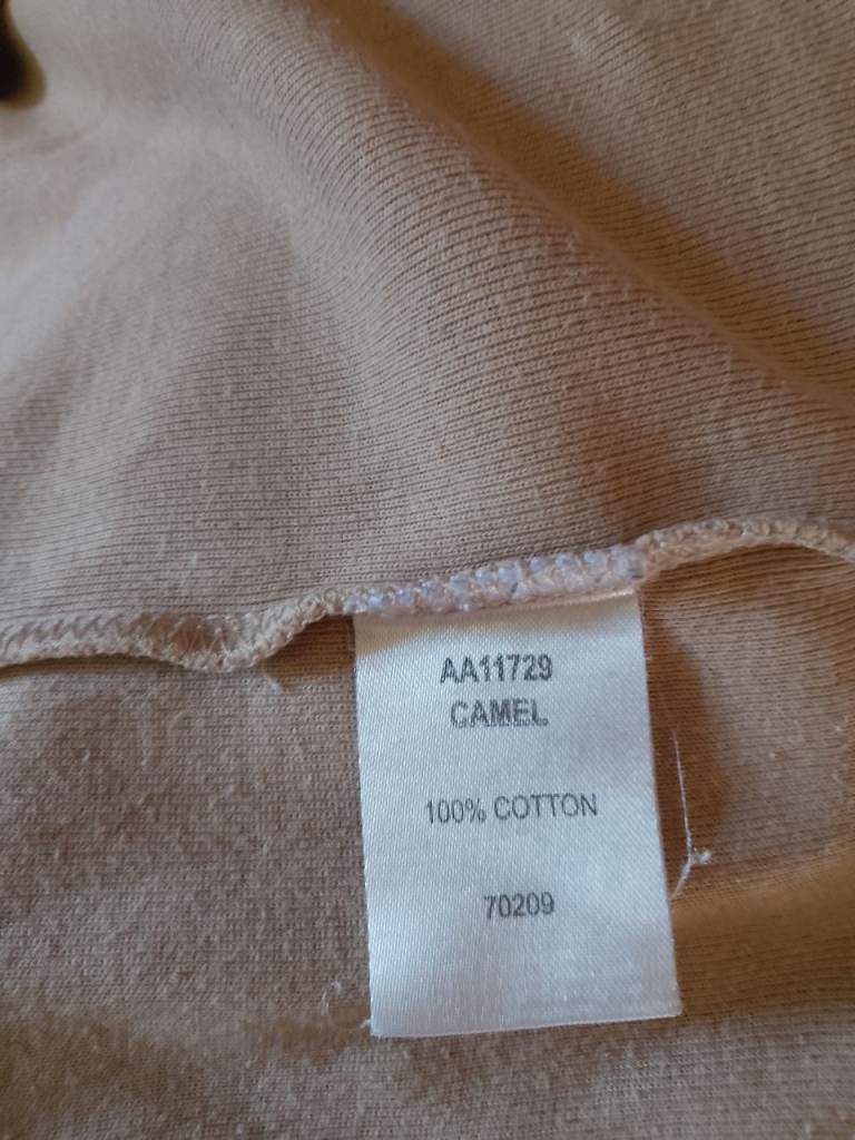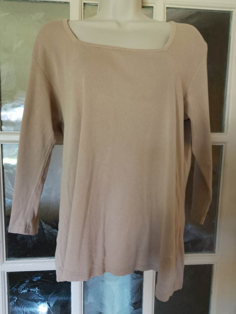 A 3/4 length sleeve top. 100% cotton in a camel colour. Worn but in very good condition.