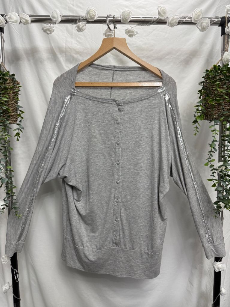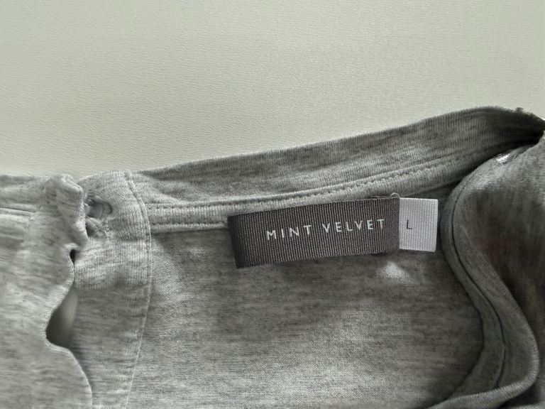 This stylish grey top from Mint Velvet features a relaxed fit with a buttoned back design. The sleeves are adorned with a subtle silver detailing for a touch of elegance. Crafted from a soft fabric blend for comfort, this top is perfect for casual or semi-formal occasions. The neutral grey color makes it easy to pair with a variety of outfits. The Mint Velvet brand is renowned for its quality and fashion-forward designs, ensuring this piece is both chic and durable.