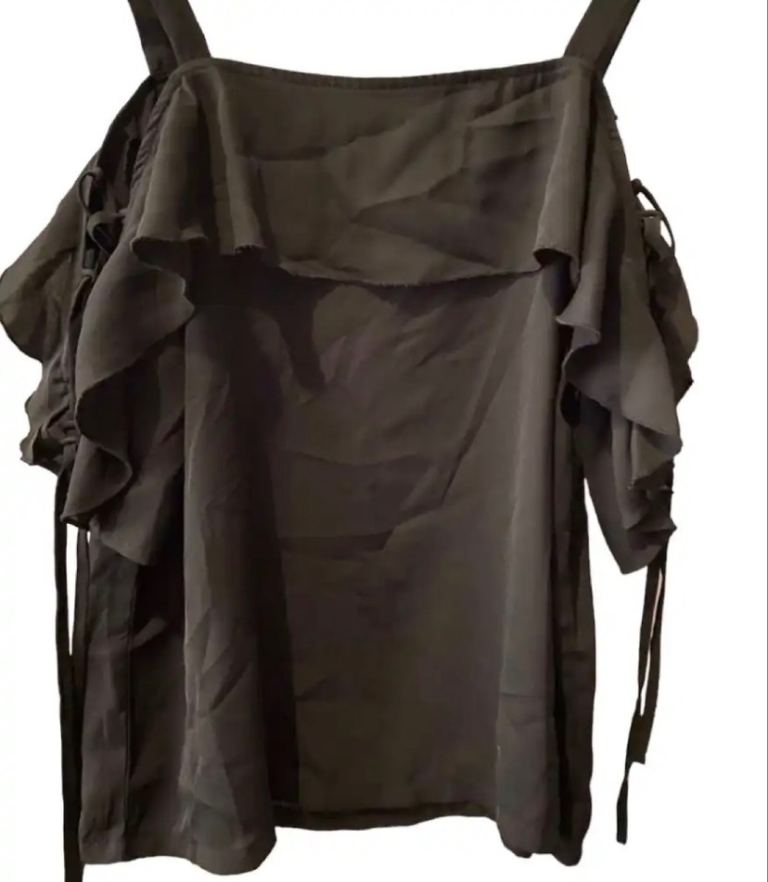 ◼️I am having a massive clear out of my personal items/belongings and being sold is a Black Ribbed Summer Vest Tank Top with White Trim Dipped Neckline.