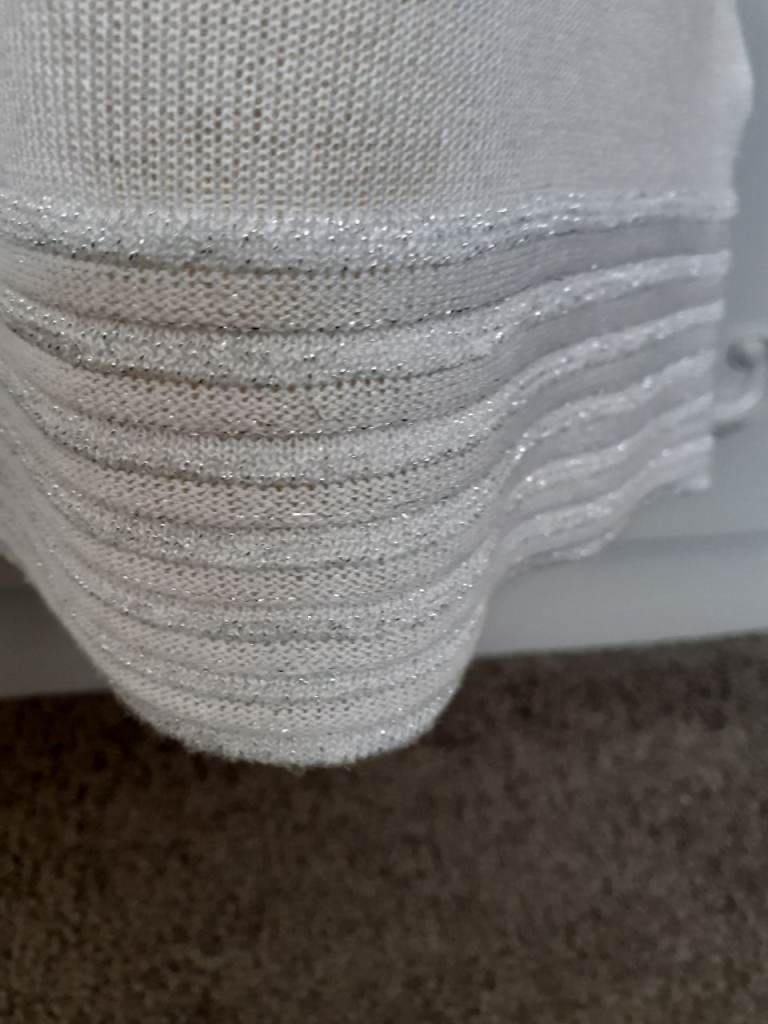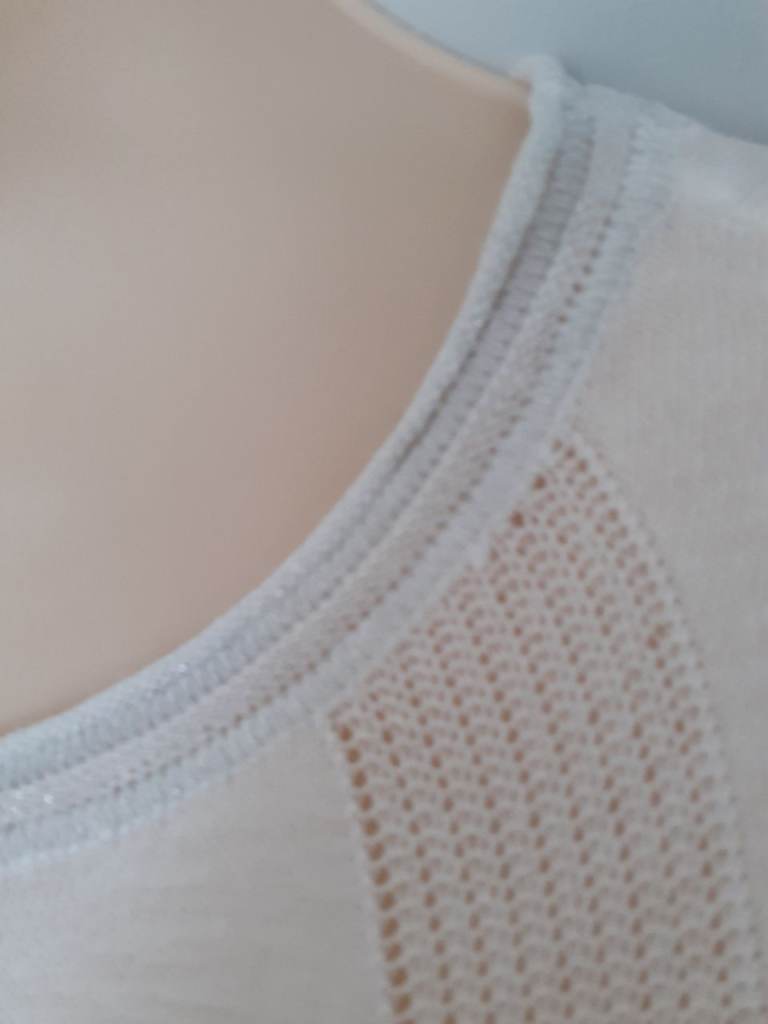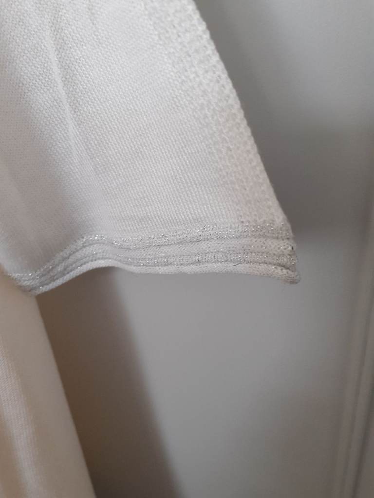 Shimmery fine knit short sleeved top, silver thread to hem and sleeves. Very slightly sheer. Check out full listings ALL £3 items 2 for £5