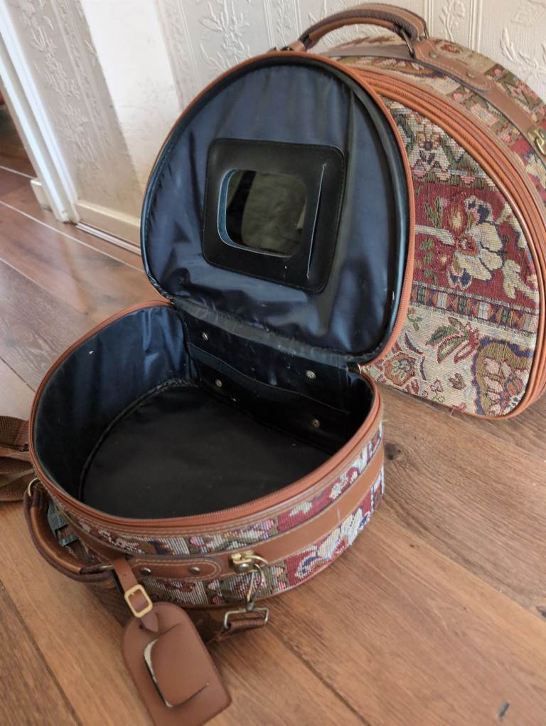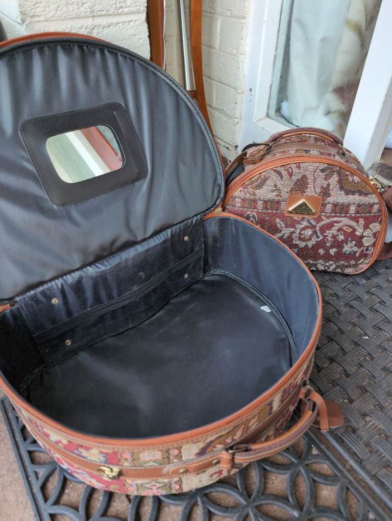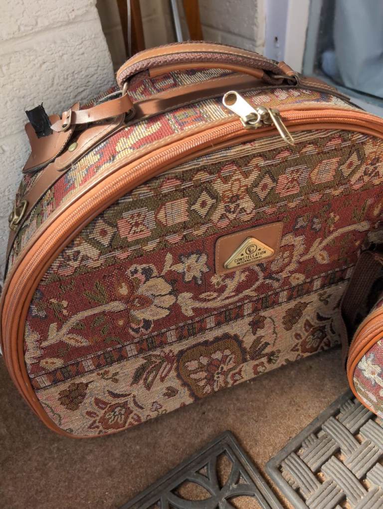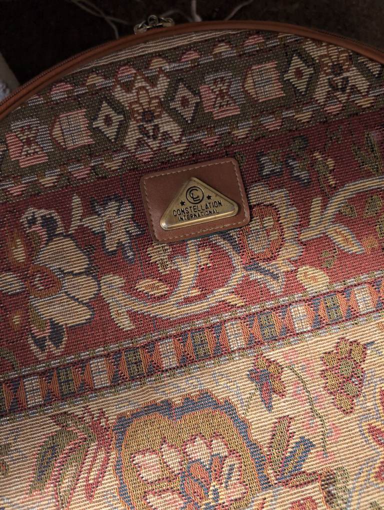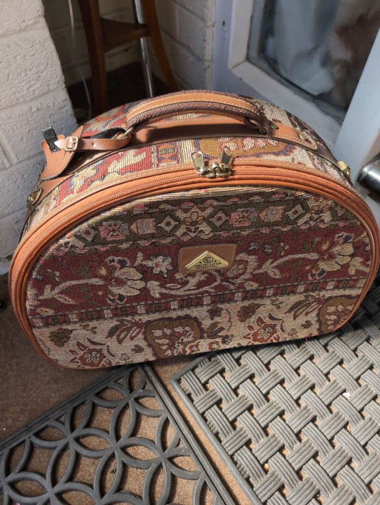 Vintage style tapestry, constellation demi lune vanity overnight case ,