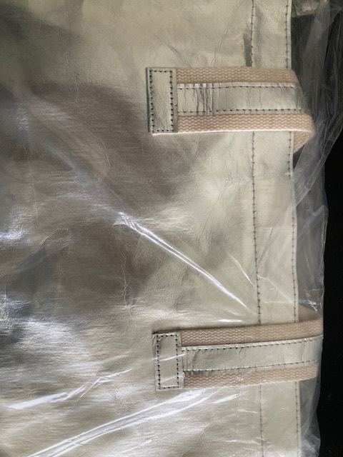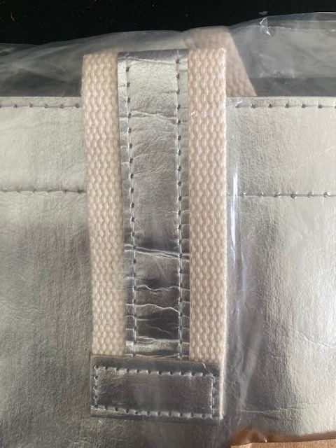 “Aspen Tote Bag in shimmering metallic silver …strong customer favorite—and it’s easy to see why. With its luxe, leather-like texture, this stylish bag is crafted from sustainable, washable paper making it as eco-friendly as it is eye-catching.