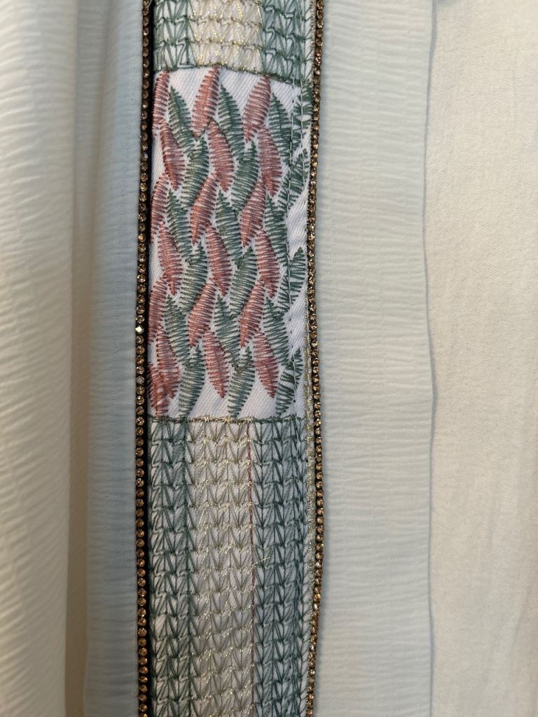 • Design: Intricate multi‑tone embroidery along the front, collar, and cuffs