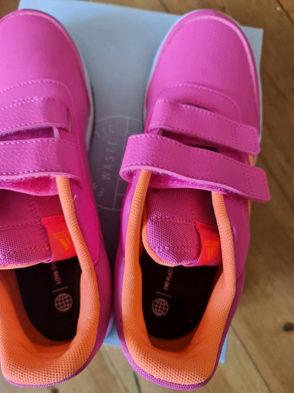 Bright pink with orange trim. Size uk 5.5. Velcro fastening. New and unworn in box. Bought for a festival but due to a change of plan never worn