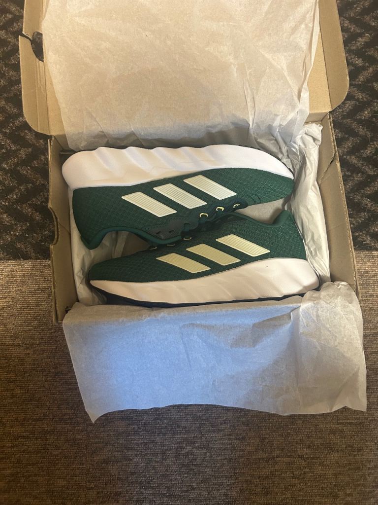 The adidas Switch Move Women’s UK 3.5 White and Green Comfort Fitness Trainers are a stylish and comfortable choice for casual occasions. These low-top trainers feature a lace-up closure, rubber outsole, and standard shoe width for a comfortable fit. The supination pronation and rubber cleat type provide support and stability, making them ideal for fitness activities. The trainers are adorned with the adidas logo accent, adding a touch of sporty flair to the design. The white and green colour scheme adds a pop of freshness to the overall look, making these trainers a versatile addition to any woman's shoe collection.