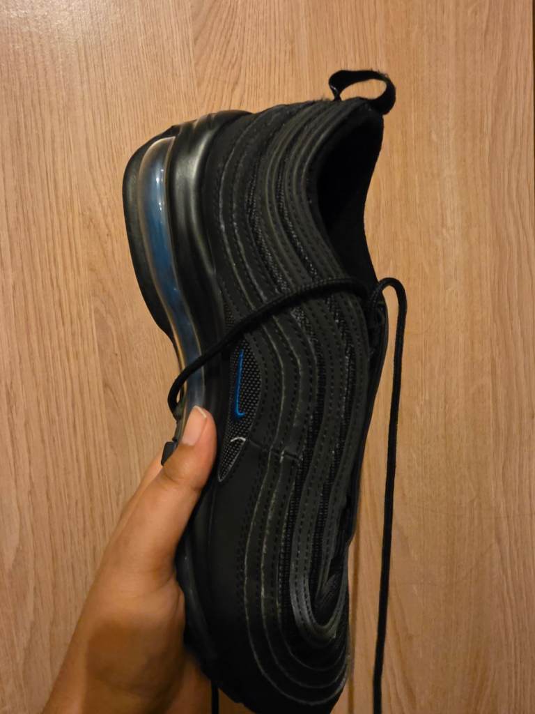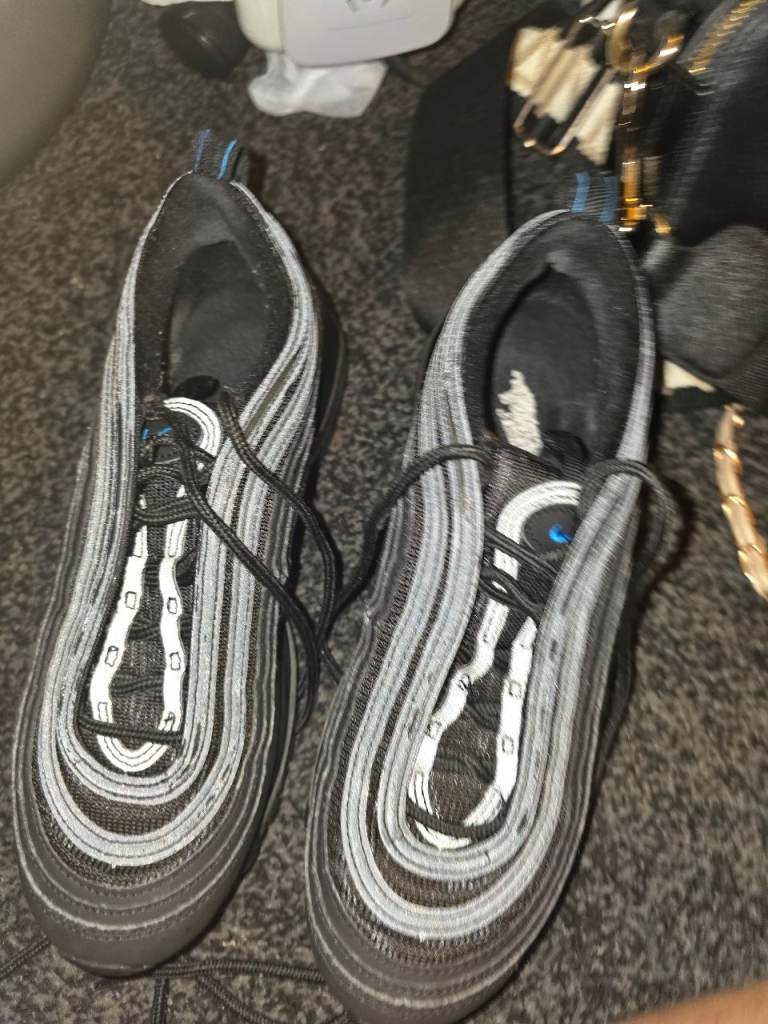 These are air force 97. They are used and they are comfortable. They are a size 5 and very secure.