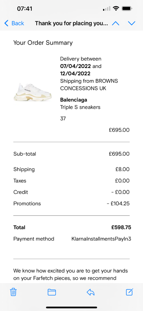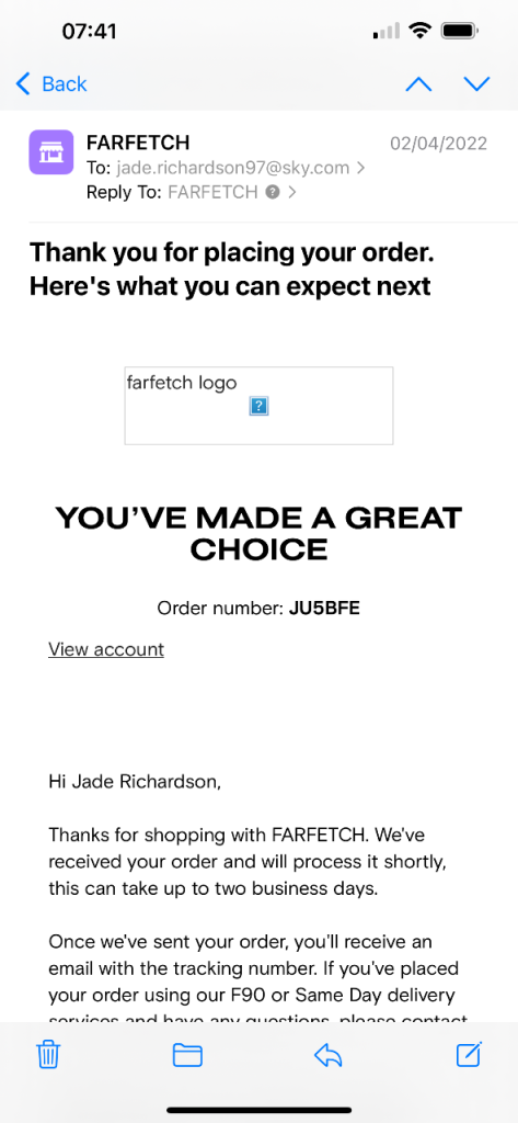 Bought from Farfetch in 2022 (please see order confirmation in images)