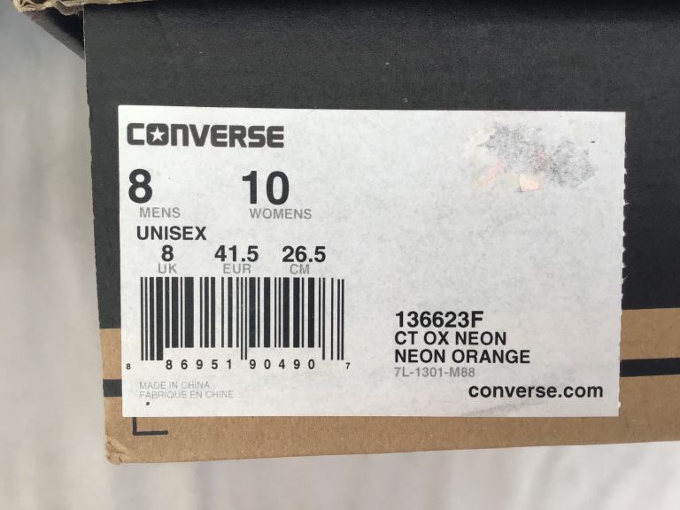 Brand New ‘Converse All Star’ Ox Neon Orange Canvas Shoes, Size UK 8