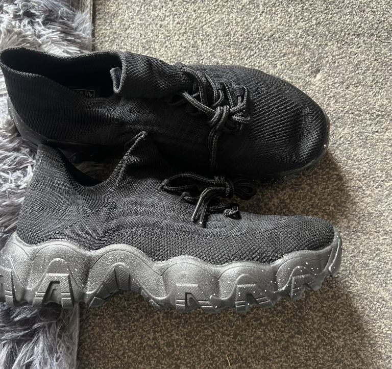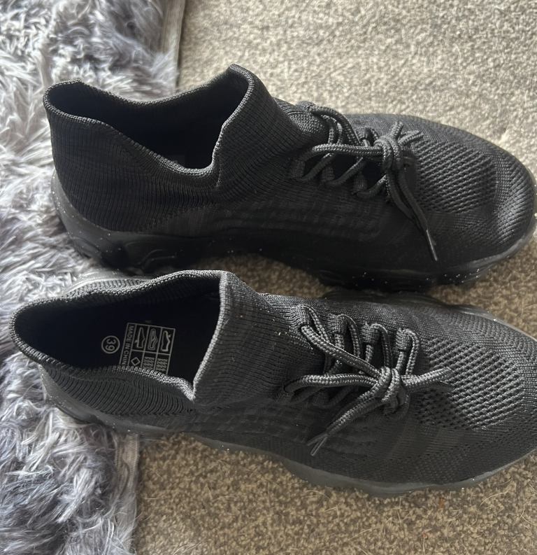 Brand new black trianers, never even been tried on as brought wrong size 6 as a gift. Really nice looking comfortable soft trainer. Can pull on without using laces. £15
