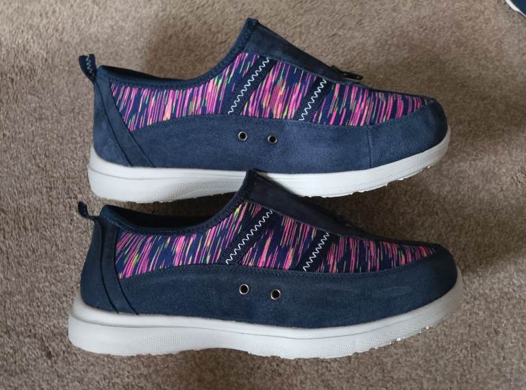 These blue, with a jazzy design, trainers are in fantastic, as-good-as-new condition. Worn maybe once or twice, they're practically brand new. Size UK 7 (EU 40, 250mm). £45 when new. Really comfortable. £2.50 p&p or collect in Harefield.