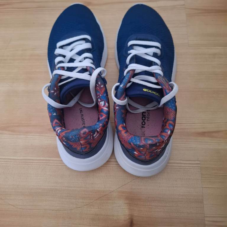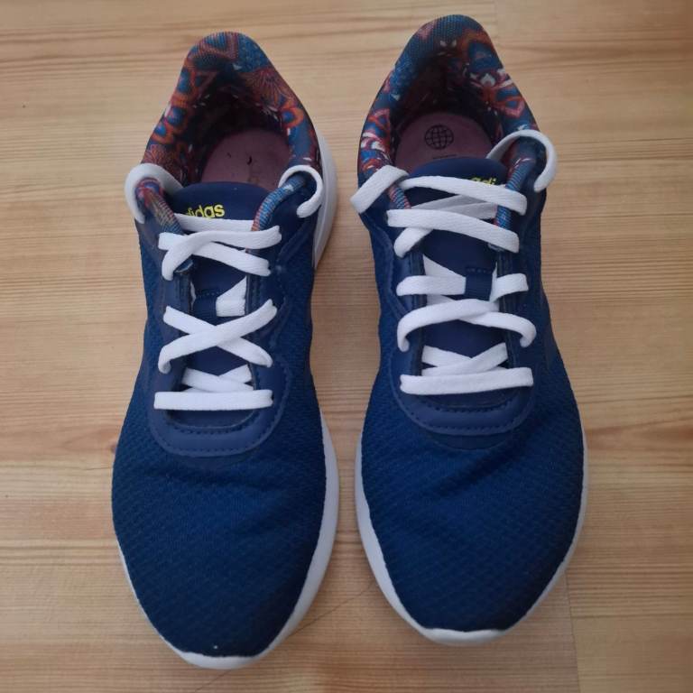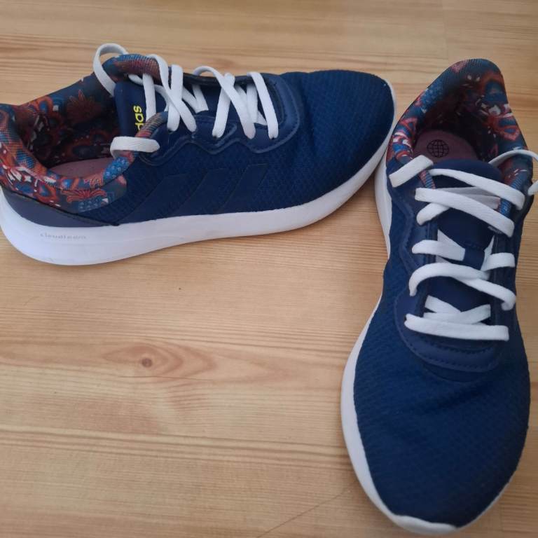 Adidas QT Racer 3.0 ladies navy floral trainers Size 5 but tight fitting so suit Size 4 or 4.5. Only worn a few times. In excellent condition REDUCED NOW £12