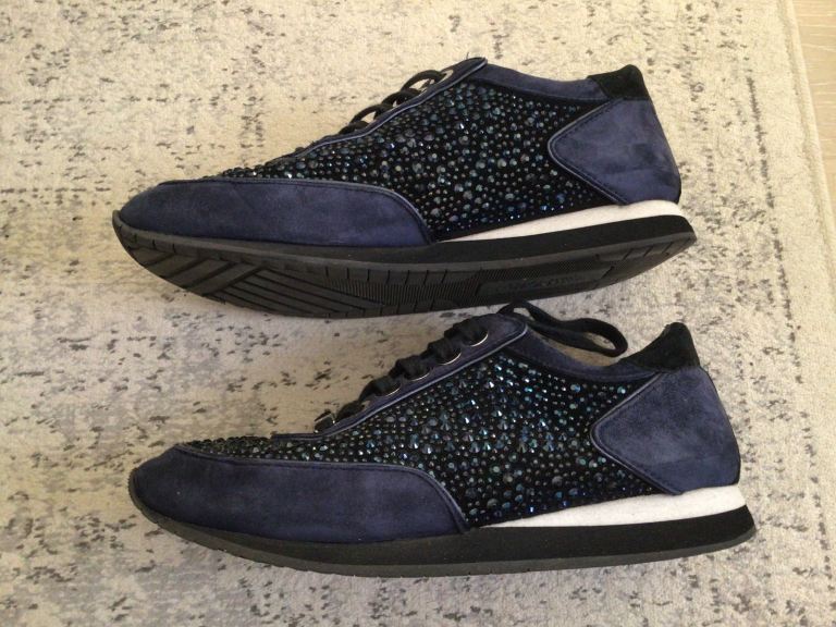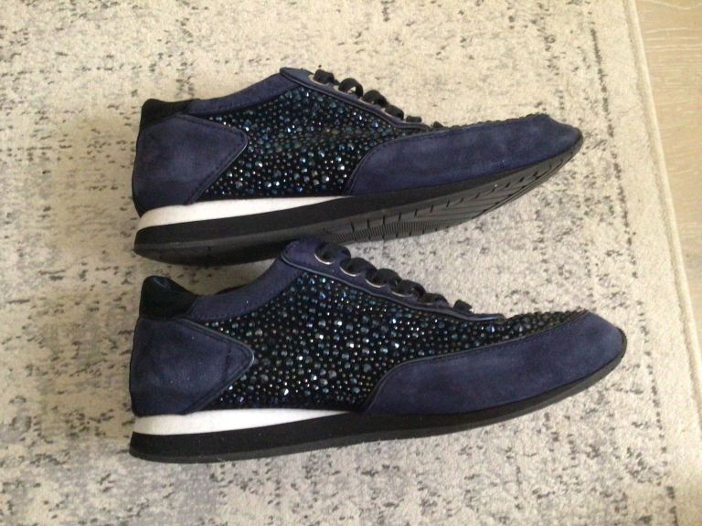 Lovely trainers with crystal embellishments. Blue, black and white.