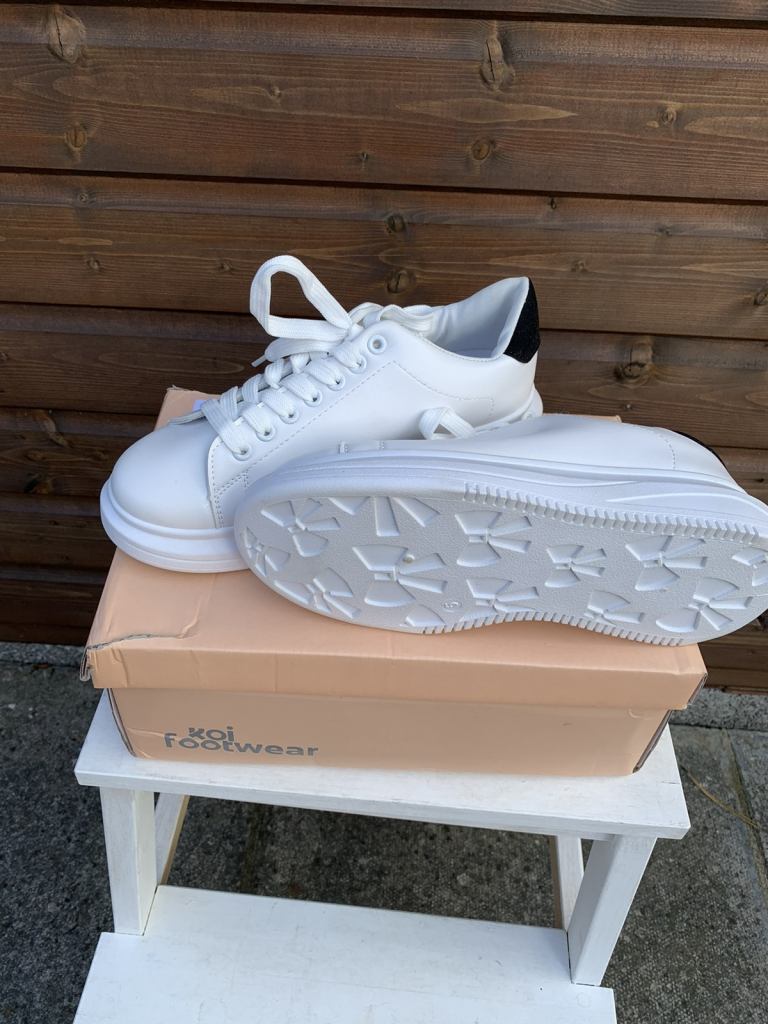 Ladies chunky white trainers with black detail on the back from Koi size 5 new unworn still in original box.