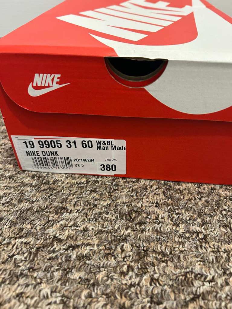 Brand new pair of Nike Dunk trainers in a striking blue and white.