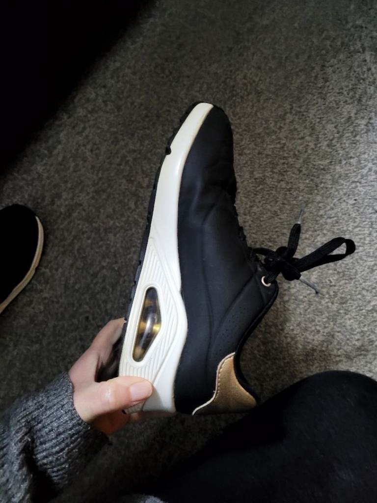 Skechers Black Dark Golden Womens 5.5