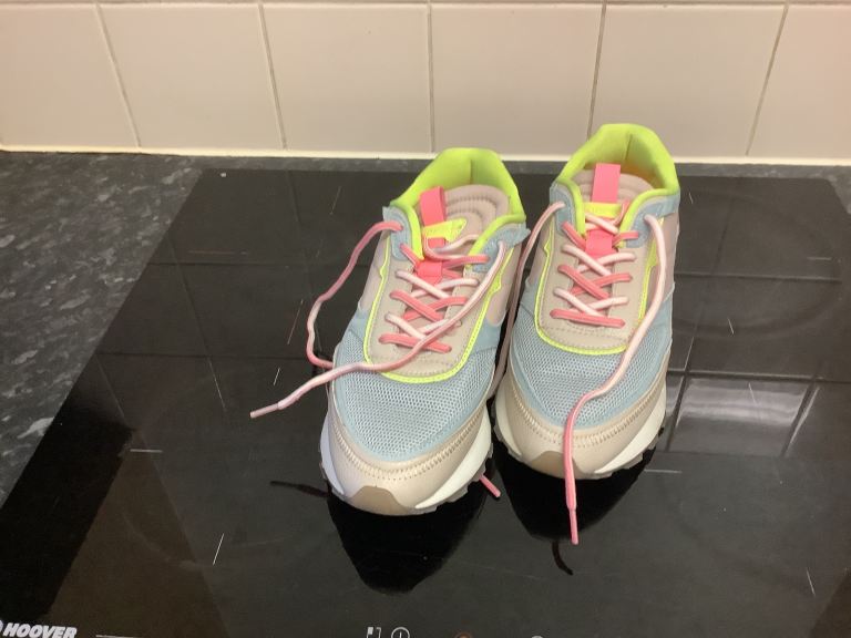 Only worn a couple of times indoors on carpet