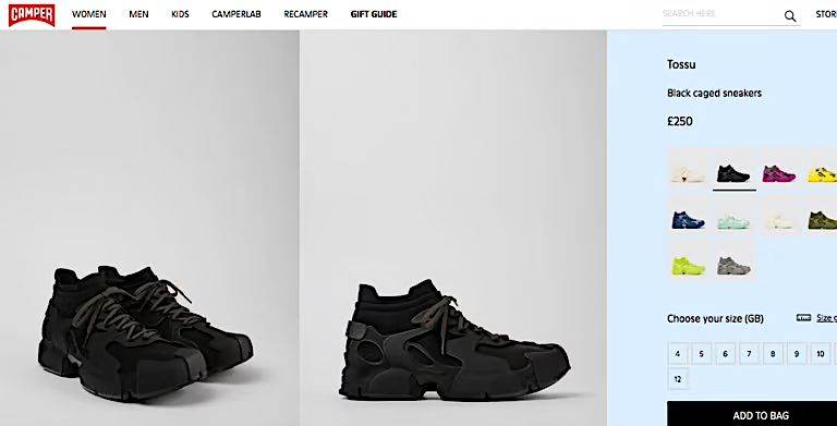 With water-repellent 3D-knitted PET sock interiors. Direct injection TPU exteriors, and recycled PU outsoles. Fully recyclable from the CAMPER LAB special edition.