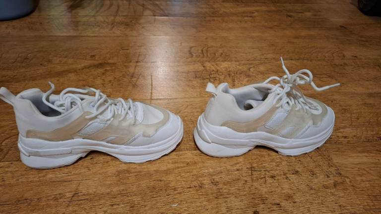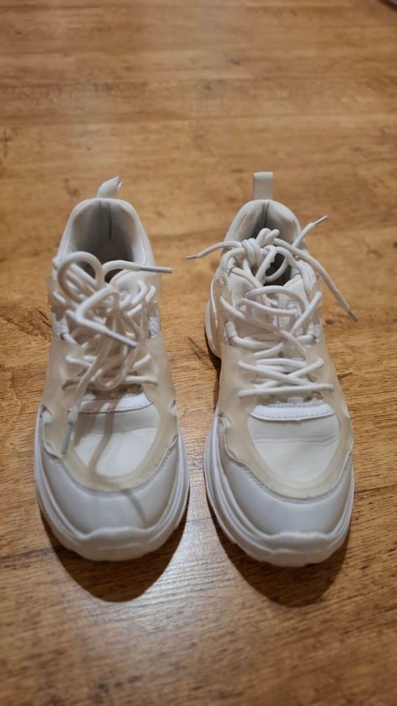 Fresh-looking white chunky trainers ready for a new home! 👟✨
