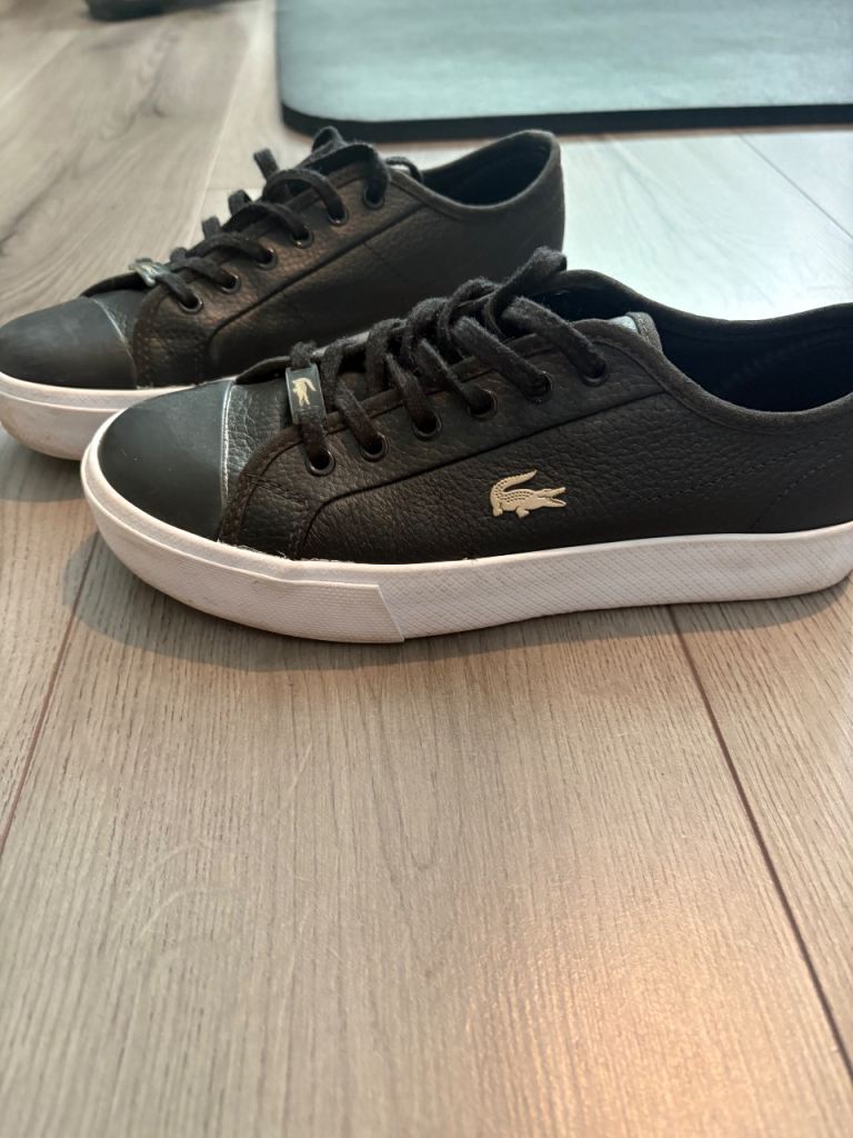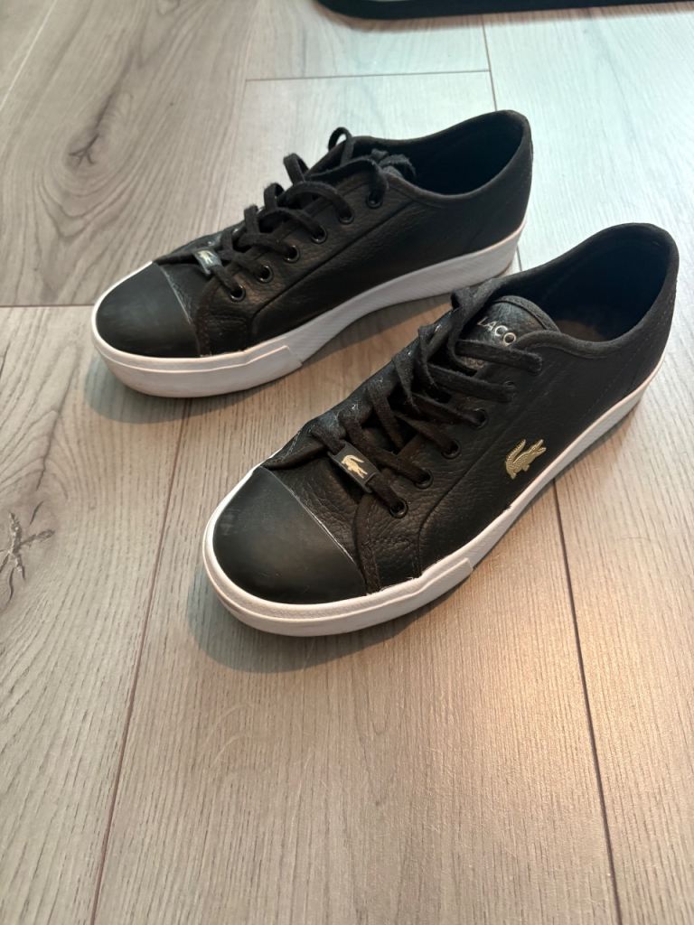 Woman’s UK size 5, black Lacoste trainers, hardly worn. In good condition