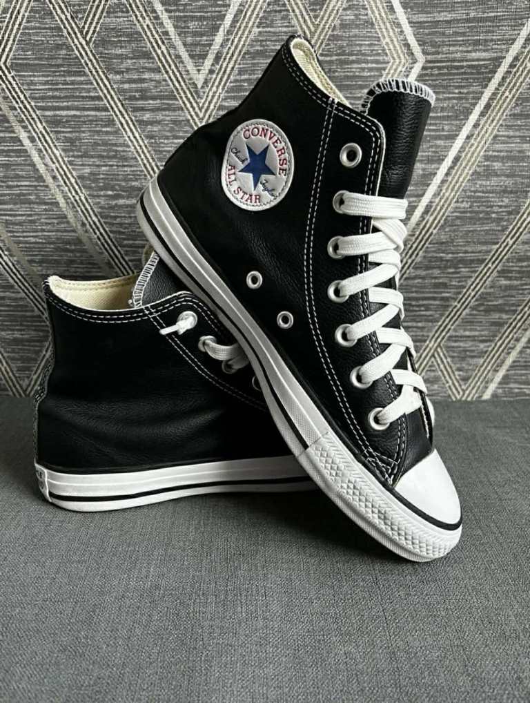 Women's black leather converse trainers size 5 worn twice in very good condition
