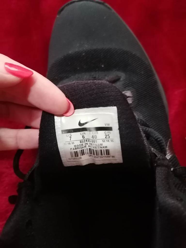Women's sneakers. The colour is black. The size is UK 6. The brand is Nike Air Versitile. Only worn 3 times.