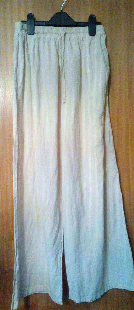 Beige Cream Drawstring Ties Wide Leg Palazzo Trousers Pants.Size 8.POST OR COLLECT!