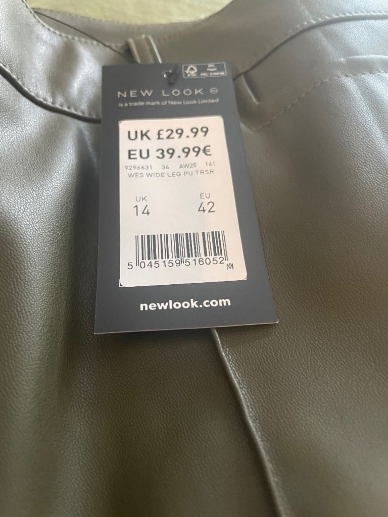 Brand new faux leather trouser, size 14