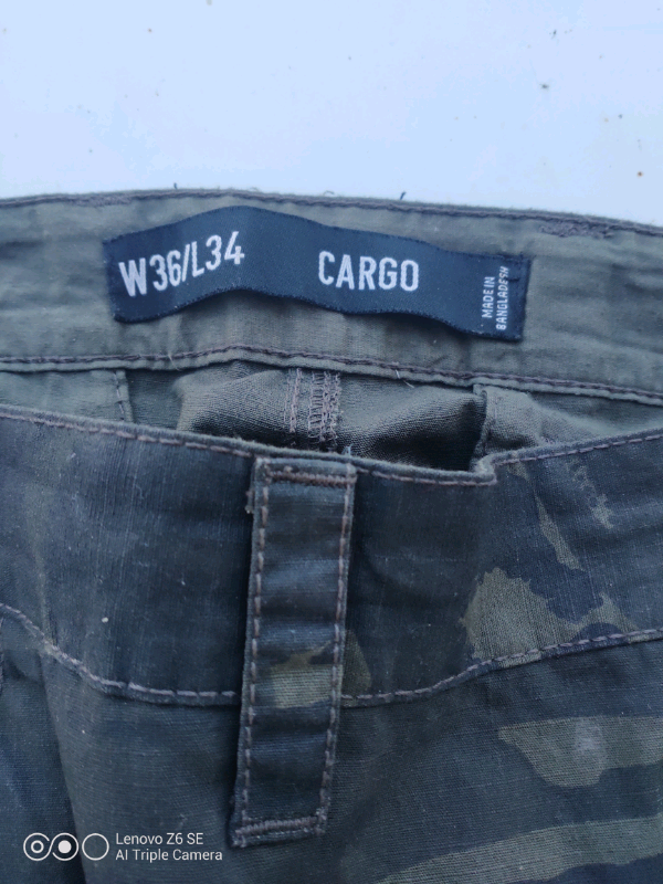 Cargo traces camouflage three different pockets 36 in waist. 34 inside leg.