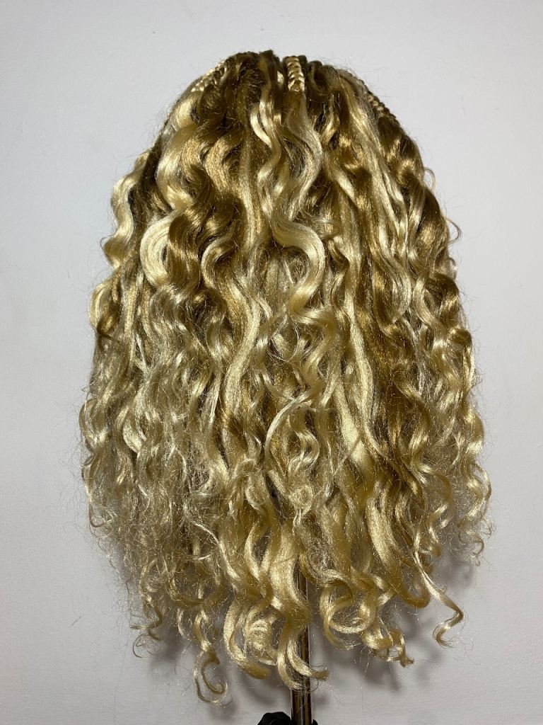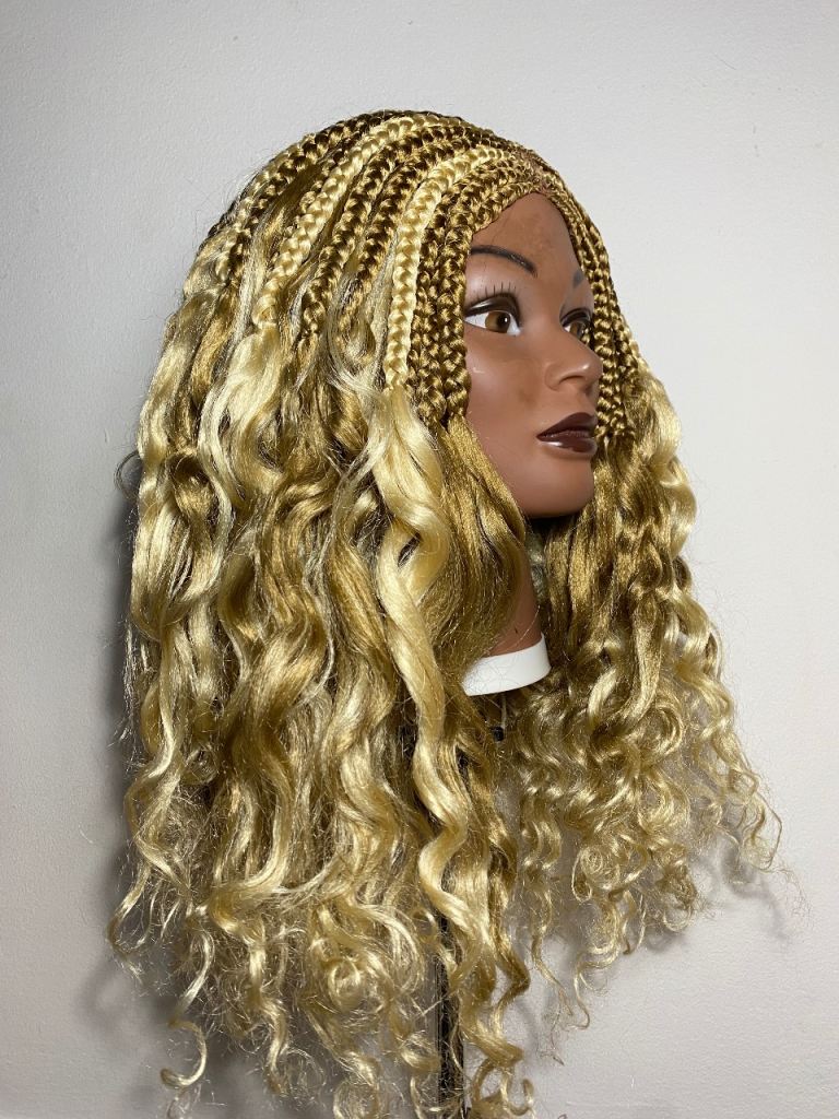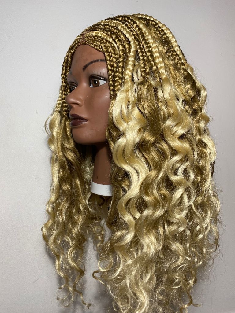 Handmade Blonde Braided Wig - Cornrows & Curly Synthetic Lace Front