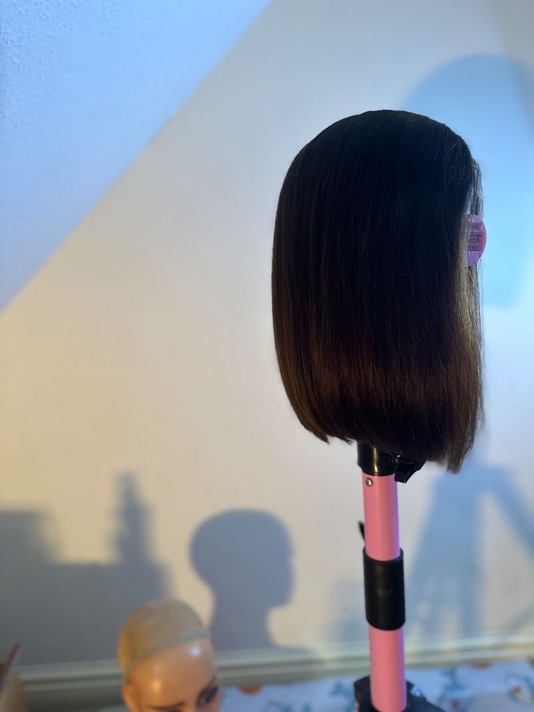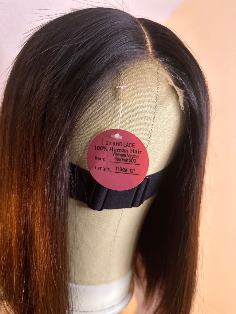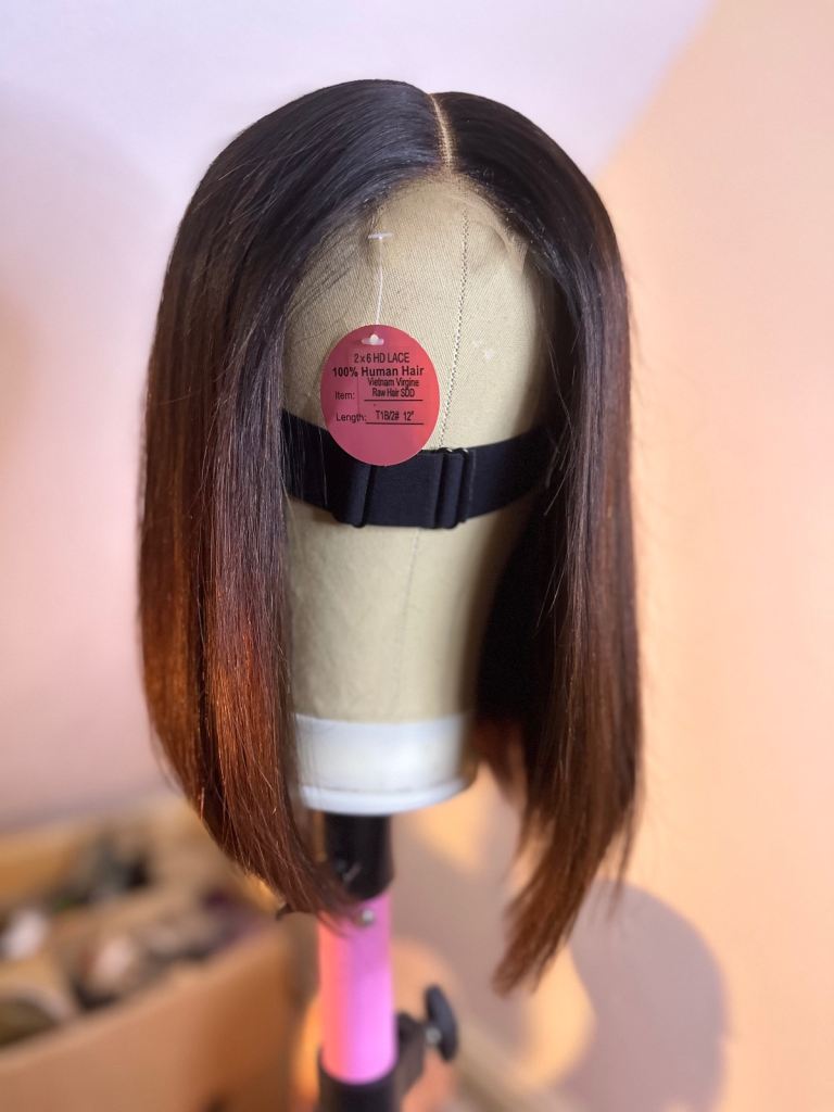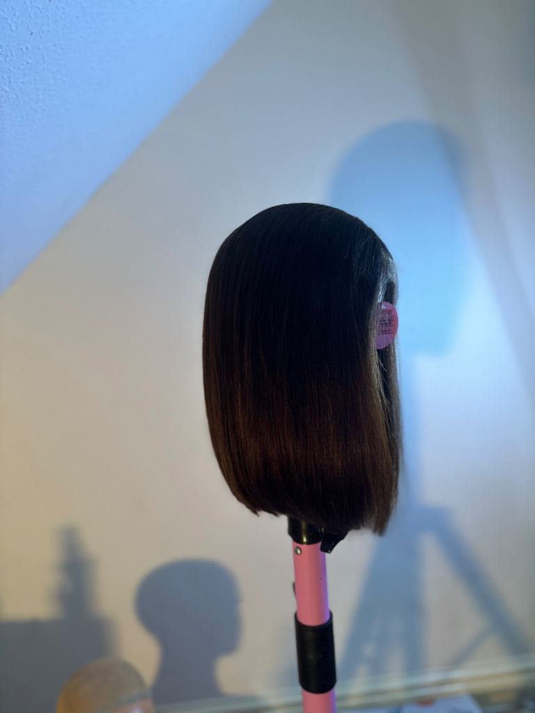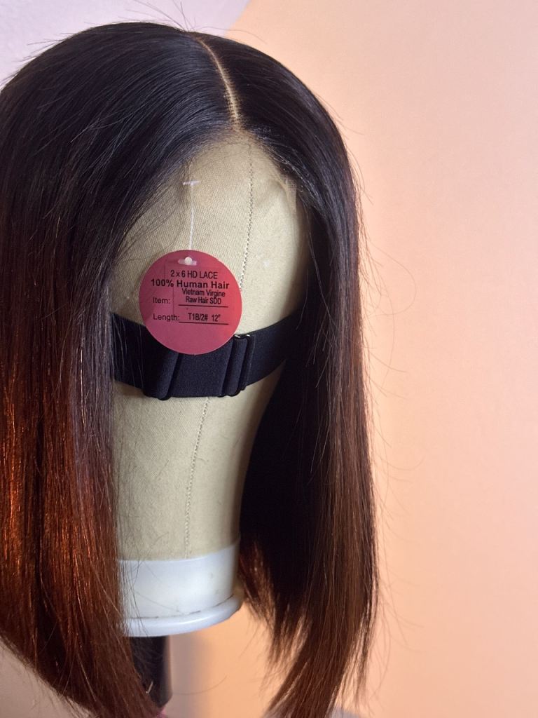 A brand new 12-inch 100% human hair bob wig, never worn.
