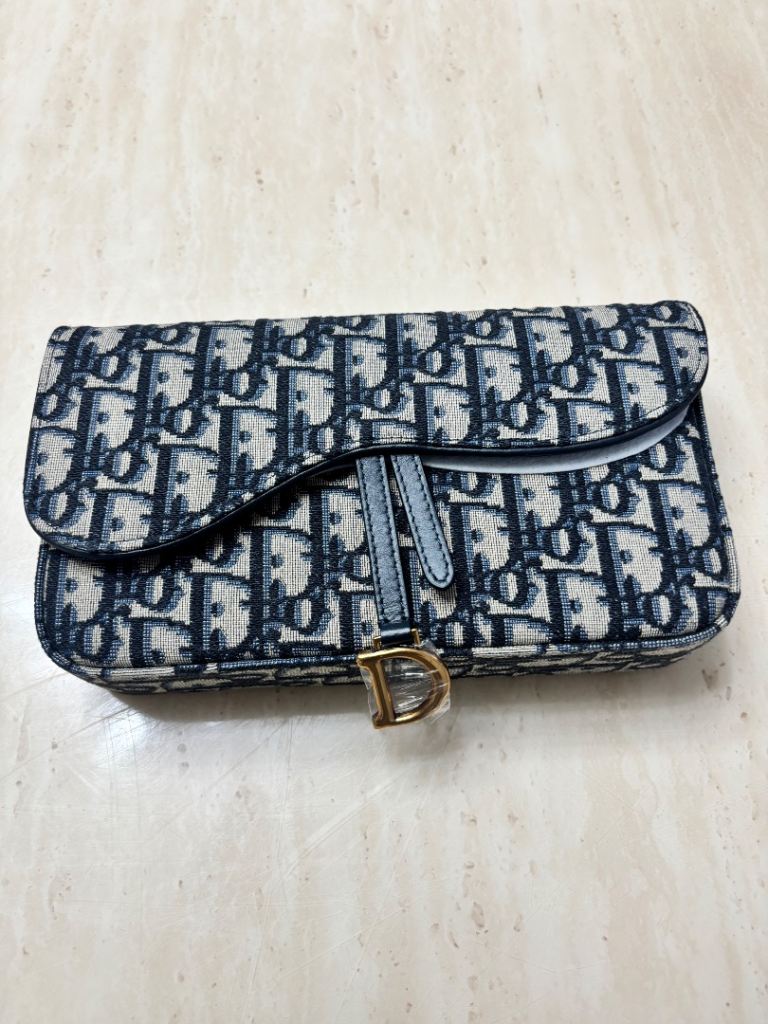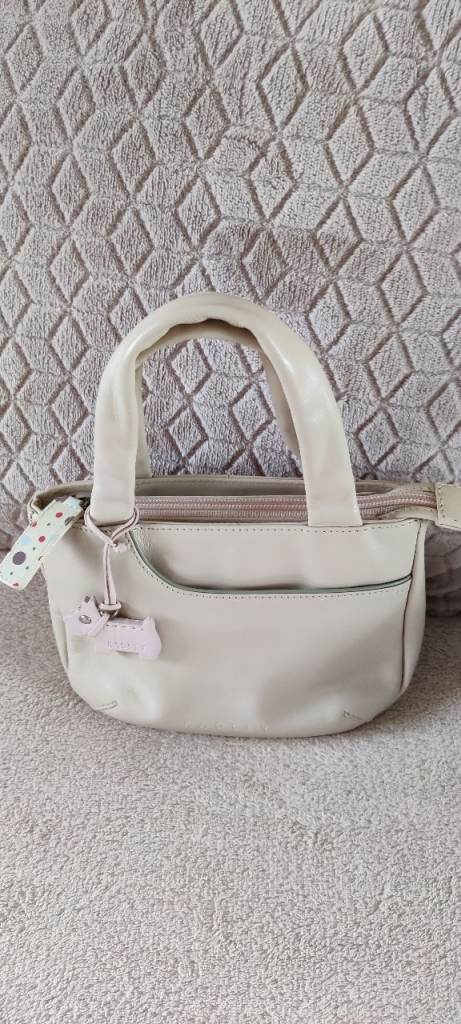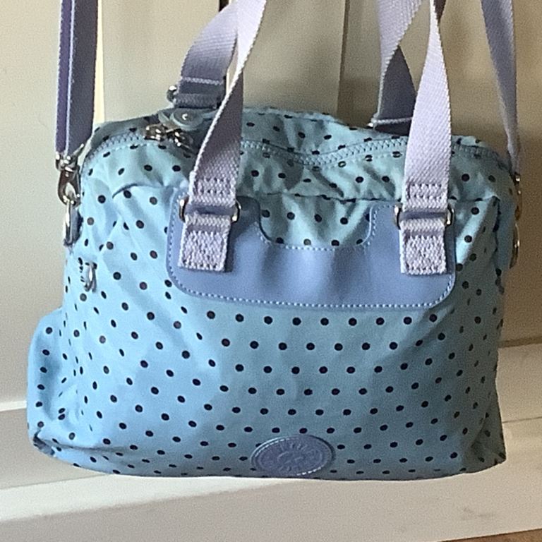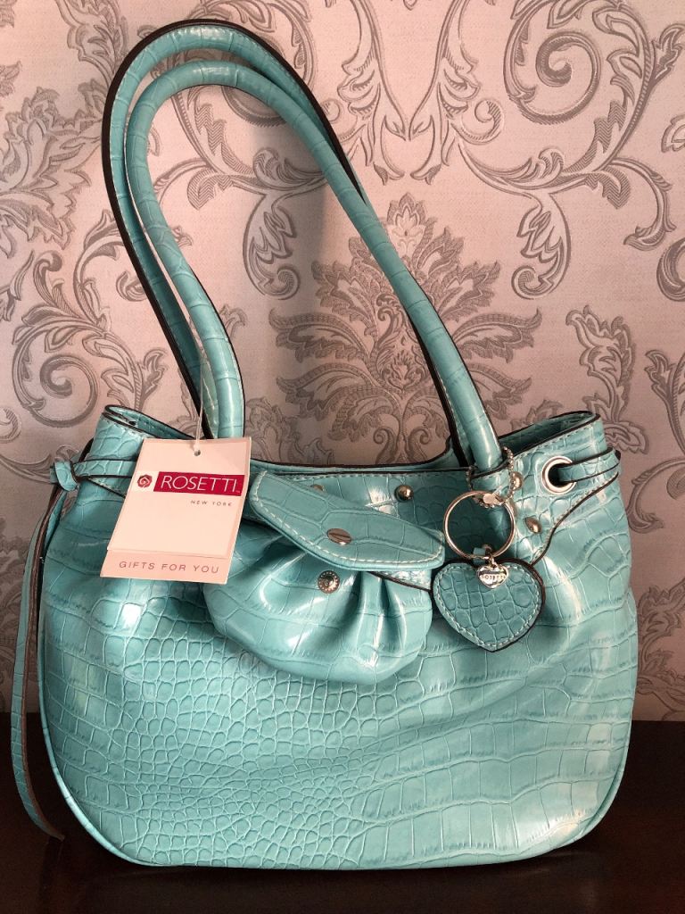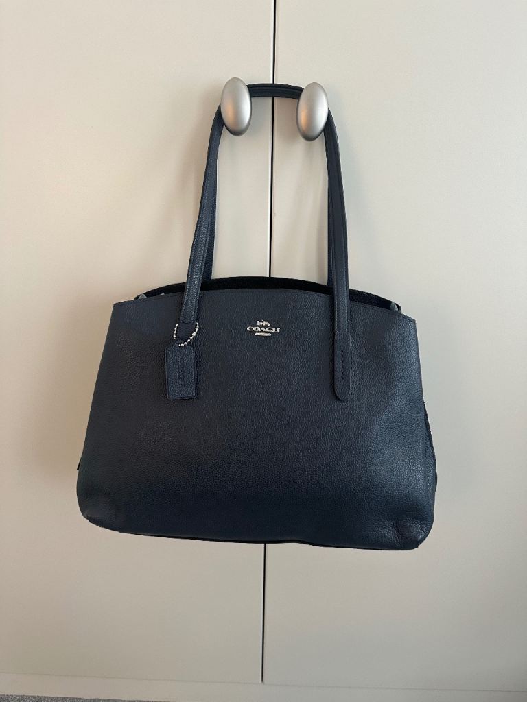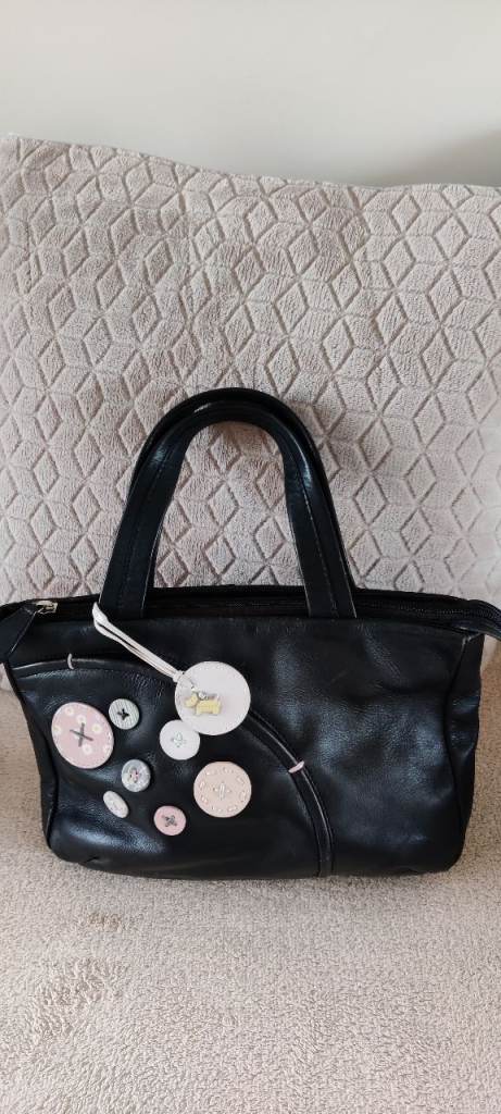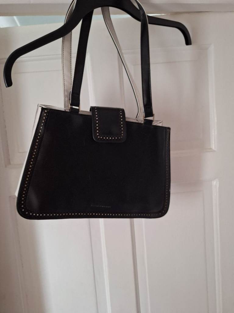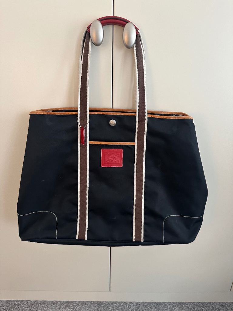 It has a black lining inside with metal features at the handles. The bag is in excellent condition and has hardly been used.