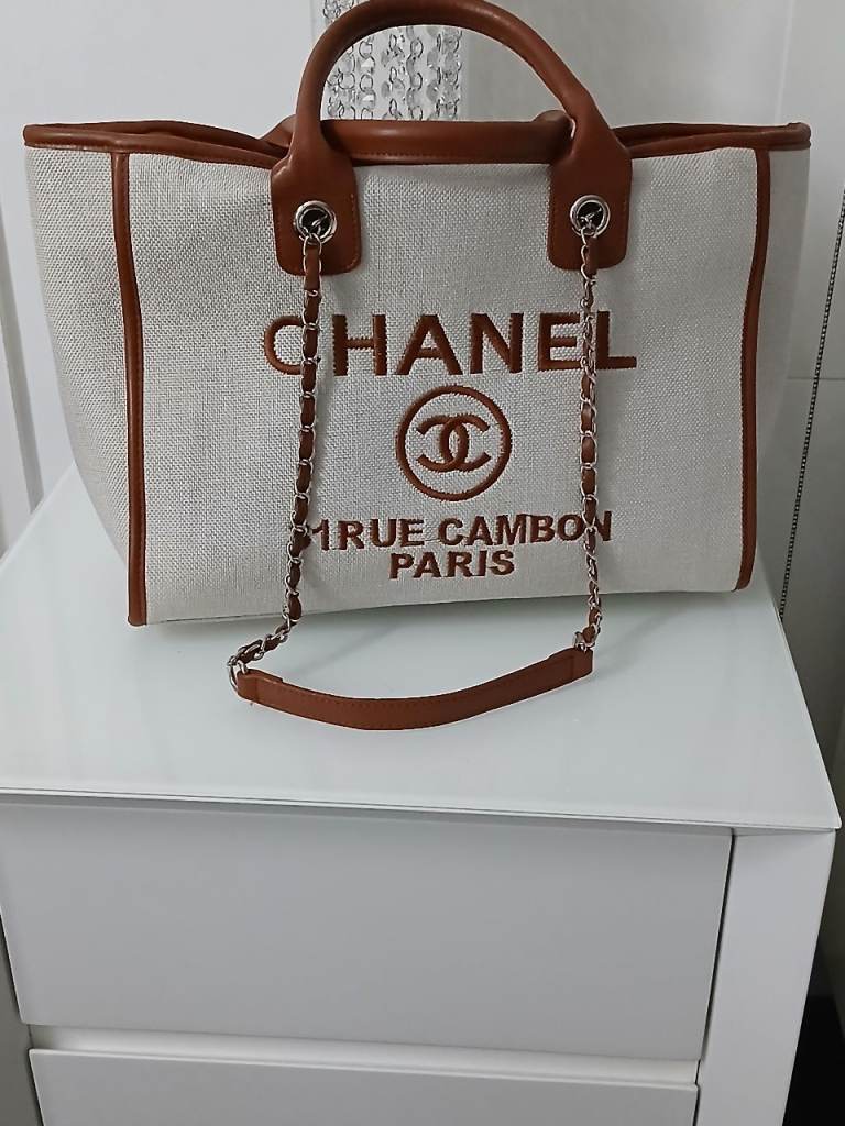 Large cream and brown tote bag with detachable pouch. Comfortable and easy to carry . ( price negotiable )
