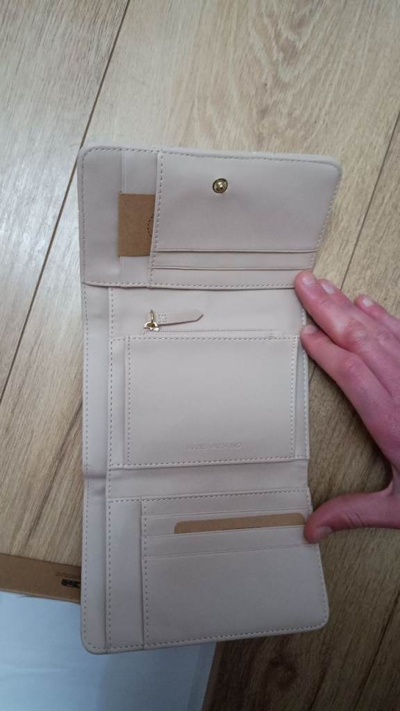Brand new Ecru ( a shade of cream) Mario Valentino Ocarina Portafoglio purse, never used and in perfect condition. Crafted from high-quality textured faux leather in a versatile neutral tone, this elegant wallet features a sleek, compact design with multiple card slots, compartments for notes, and a secure zip section for coins. Stylish and practical, it’s ideal for everyday use or as a thoughtful gift.