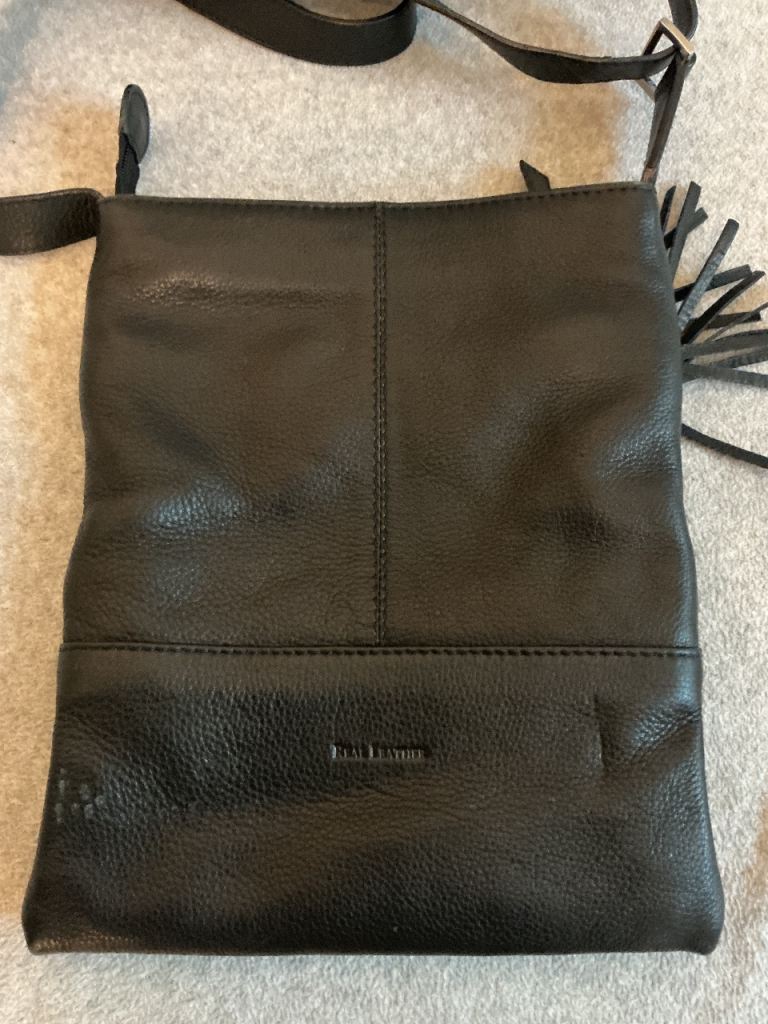 Osprey black leather crossbody handbag. Adjustable strap. Good condition with no damage. Selling for relative. Cash on collection only.
