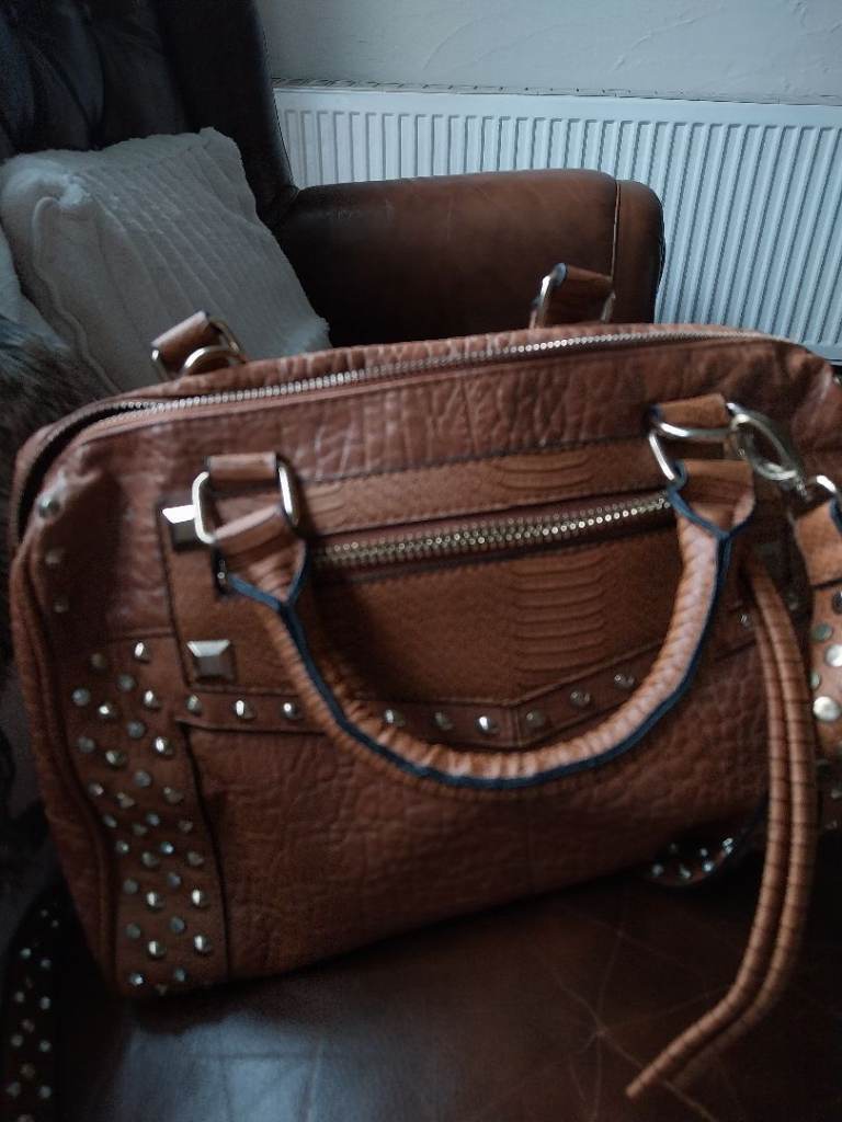 Can be carried by hand or worn as a shoulder or crossbody bag with the adjustable strap. Nice medium size — practical for everyday use without being bulky.