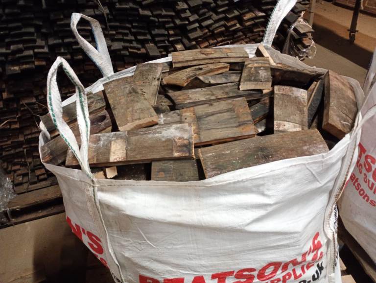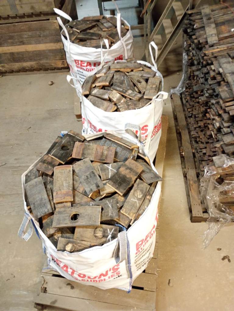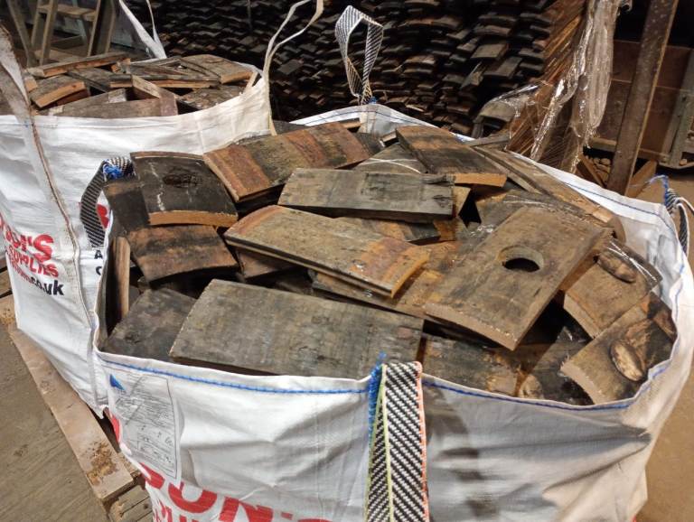 Oak barrel staves in 1 ton bags (full bags) the bags are stored in a heated shed so the wood is dry. I can deliver to the customer. Send post code and I will give you a delivery price. Same day or next day delivery. Large quantities available.