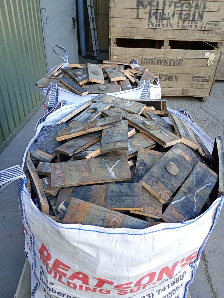 Oak barrel staves already cut in 1 ton bags (full bags) the bags are stored in a heated shed so the wood is dry, the price per bag is £80 I can deliver to the customer. Send post code and I will give you a delivery price. Same day or next day delivery. Large quantities available.