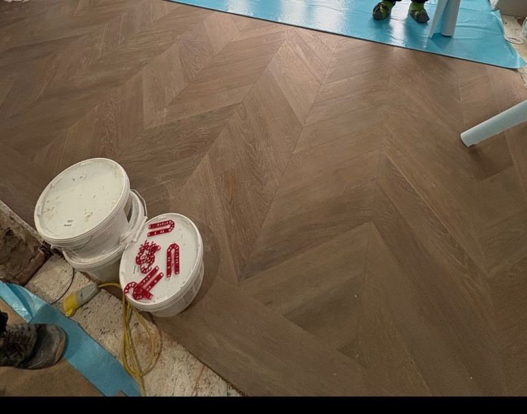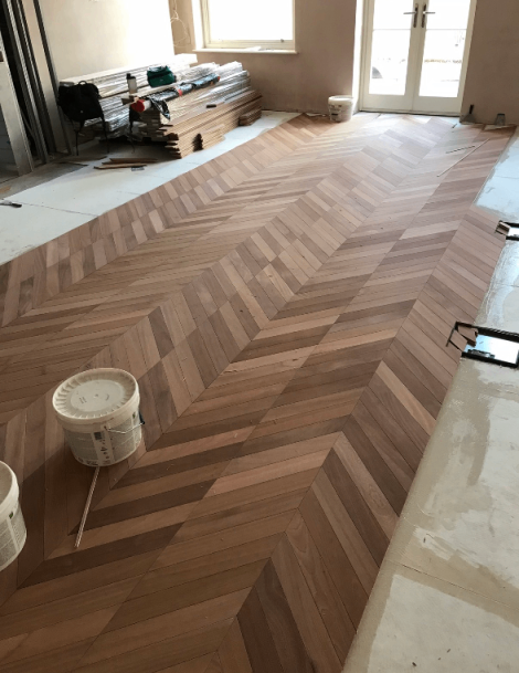 Chevron timber flooring